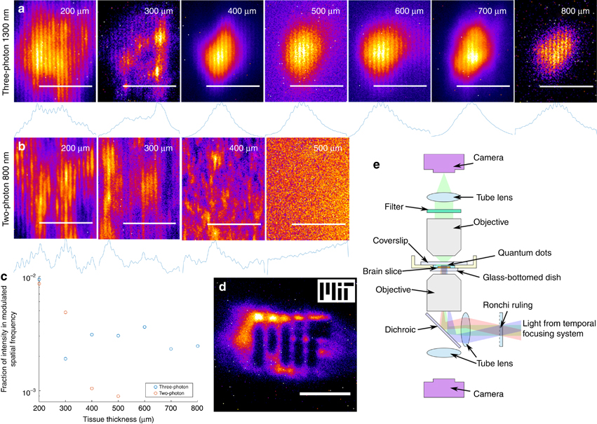 To image deep into biological tissue, two-photon microscopy has become a standard. Two-photon microscopy uses the non-linear absorption of a fluorescent molecule to simultaneously absorb two lower-energy photons as though they were one. But what is the potential for imaging with three-photons? Three-photon microscopy enables a still deeper penetration depth, but there are challenges. Now, a team lead by Peter T. So at MIT has explored the advantages of three-photon excitations for both imaging and optogenetics.